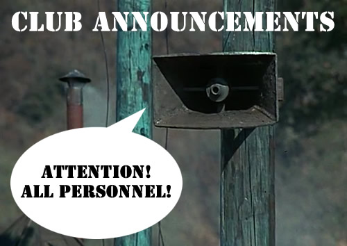 This is the place where last minute event info can be posted (road closures, weather alerts, cancellations, etc.) as well as general info for the club's benefit that may not have made it into the newsletter, but needs to be passed along to the members. Please note, that this is a public page, so all information posted here is available to anyone. If you have something that needs to be posted, just send an email to the Webmaster.